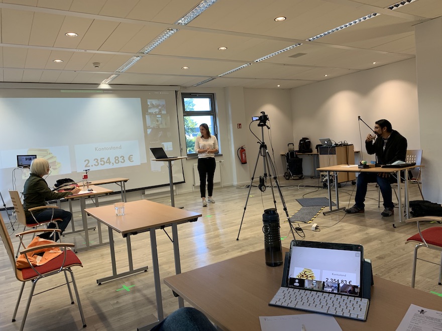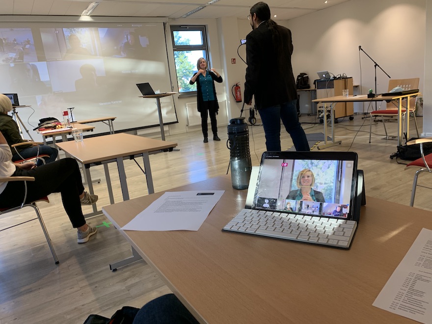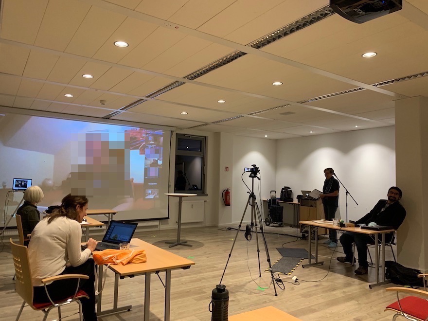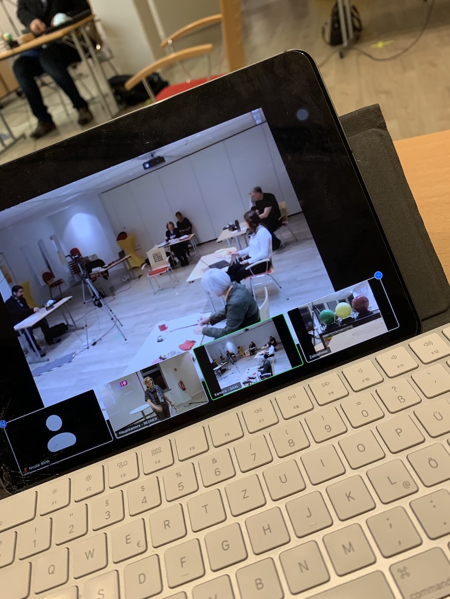 Diejenigen im Raum haben sich über Zoom zusätzlich eingewählt, um zu checken, ob alles funktioniert